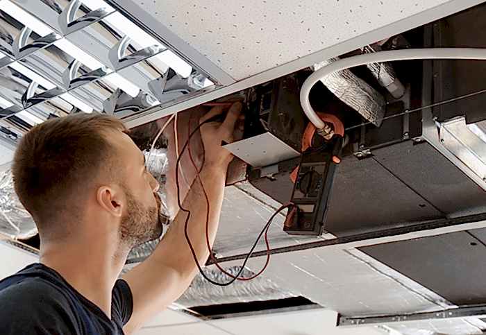 - Осуществляется визуальная проверка воздуховодовна предмет утечек и блокировок, тестируются клапаны и заслонки, состояние теплообменников, исправность нагревательных Пинап и кондиционеров.
